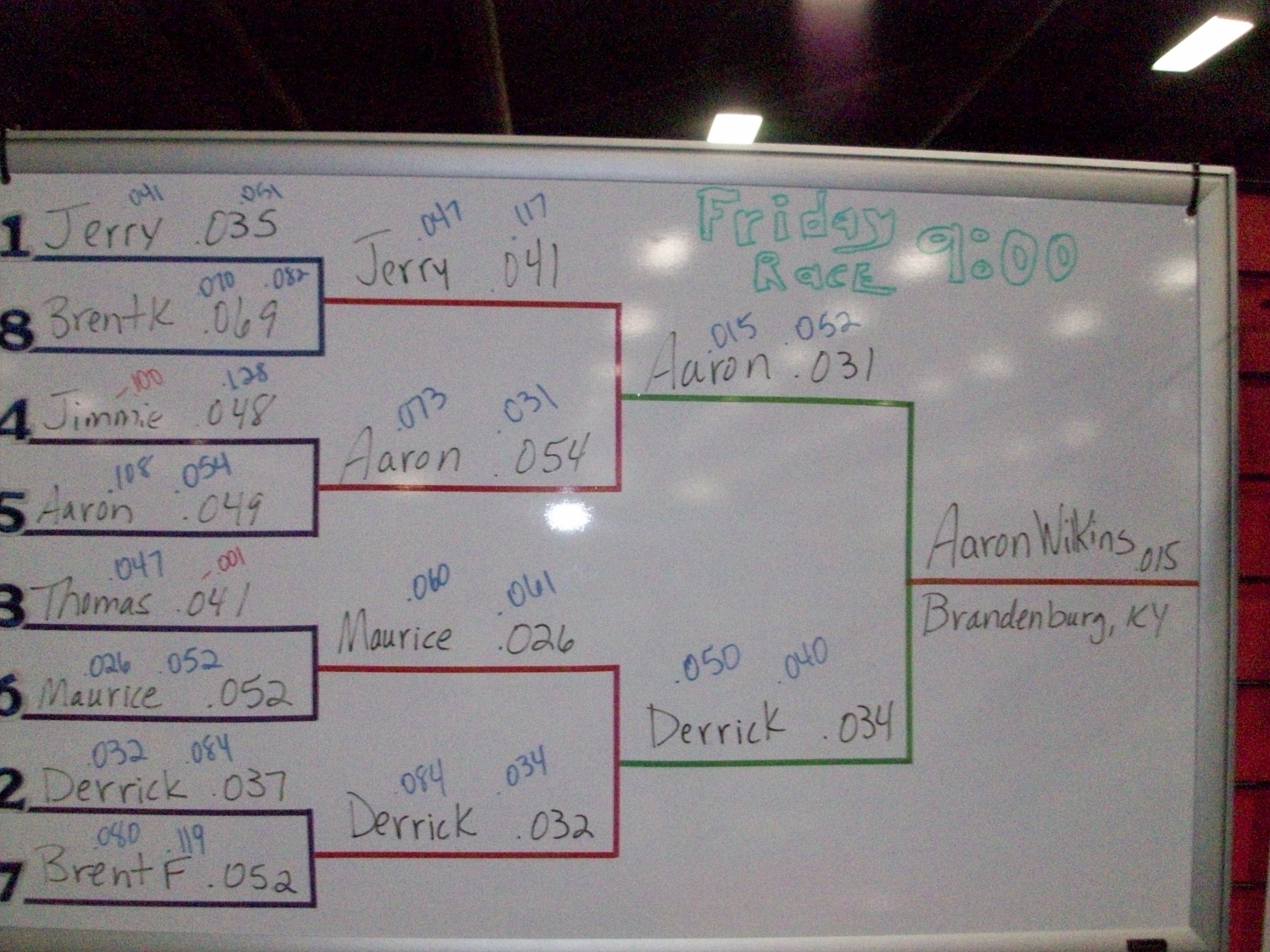 Friday's 9:00 Reaction Time Race Winner