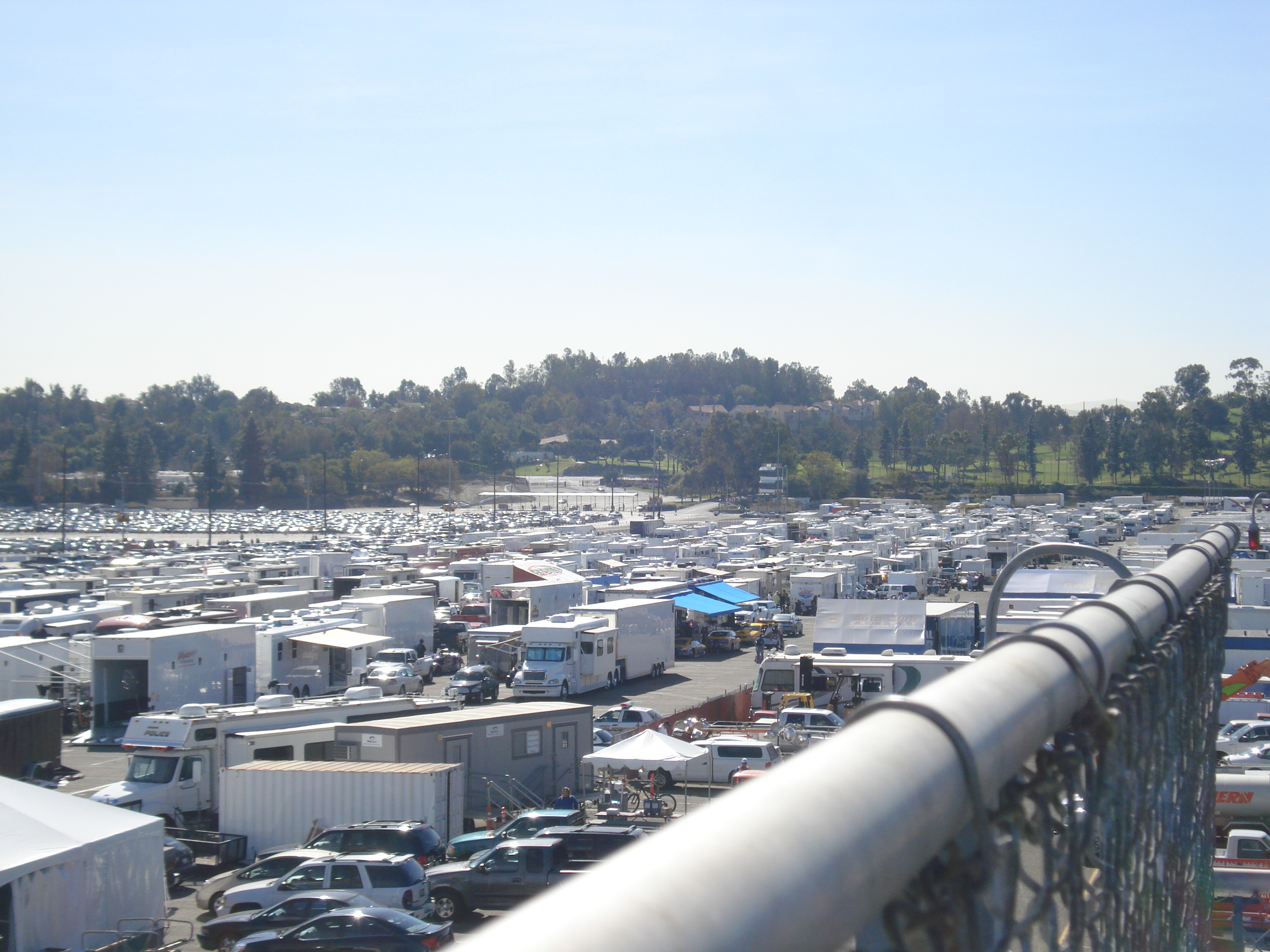 | ARRIVED IN POMONA, CA AT THE AUTO CLUB RACEWAY AND GOT IN LINE TO PARK. |